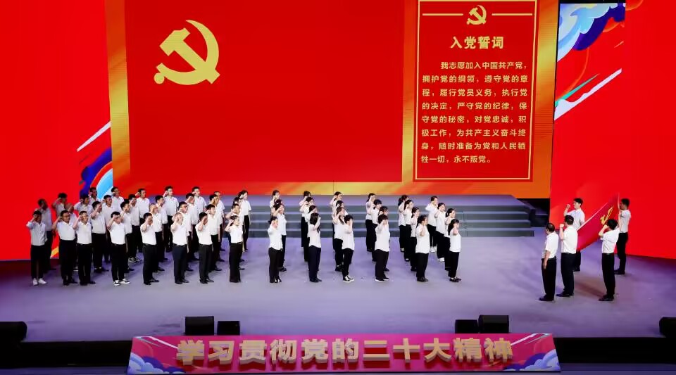 活動中還組織了新黨員集體宣誓,對集團(tuán)先進(jìn)典型事跡進(jìn)行展播。慶祝活動在全場合唱《沒有共產(chǎn)黨就沒有新中國》的歌聲中落下帷幕。