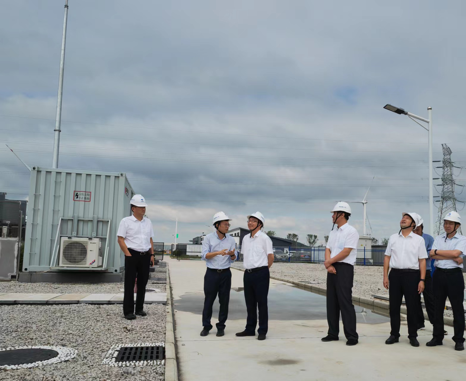 江蘇沿海通威富云新能源公司董事長黃晶生介紹了項目組織管理架構、升壓站和光伏區建設、漁光一體生態基地及尾水處理等相關情況。雙方就新能源開發和生態養殖等內容進行了交流。