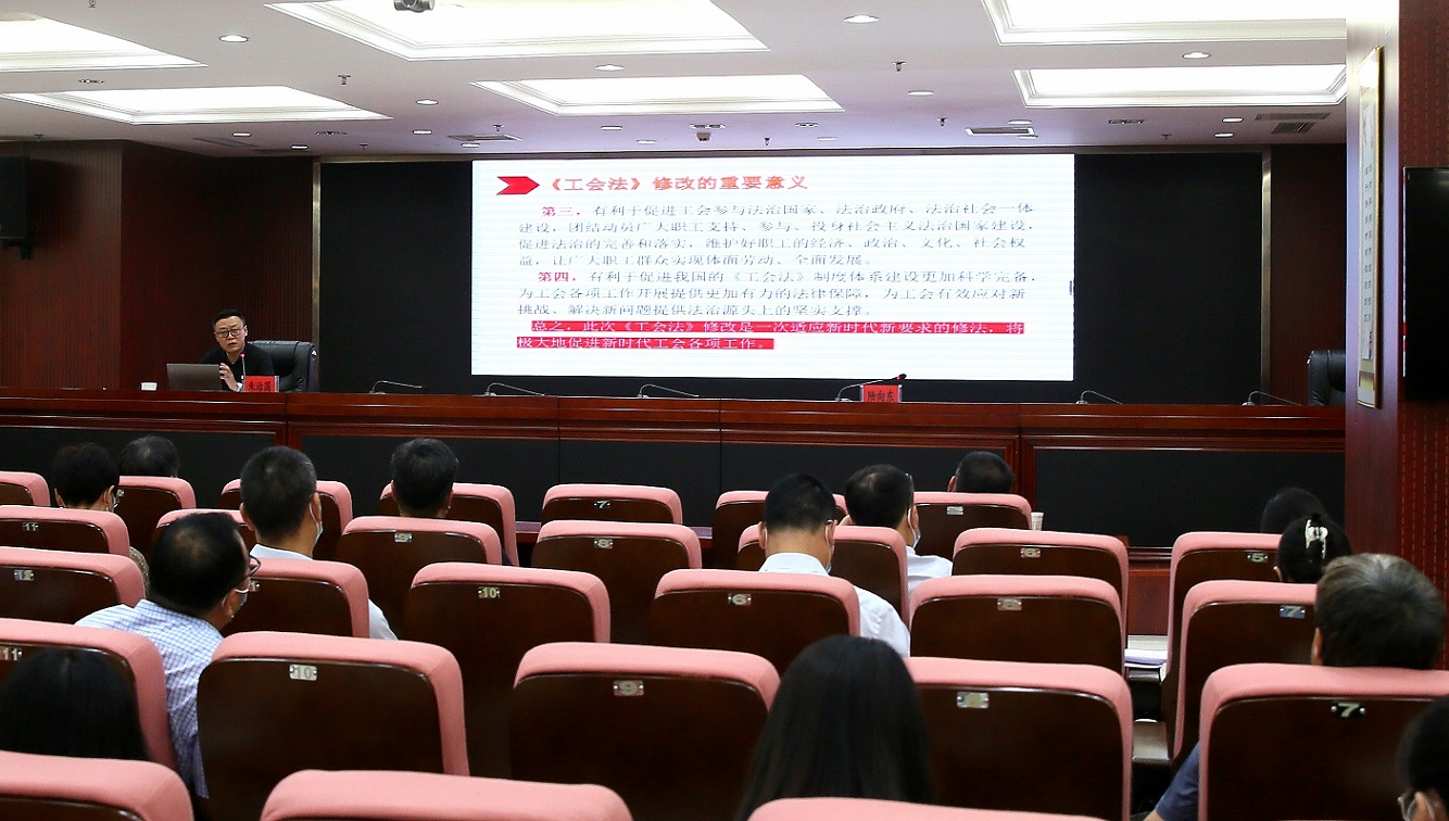 培訓班邀請市總工會基層工作部部長朱治國圍繞新工會法、職代會操作要點及開展提案工作等方面作了專題輔導。