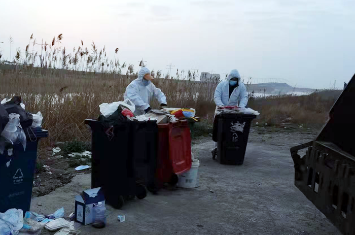 疫情防控期間,保潔分公司要保障徐新路、海濱大道等主干道路及幸福家園及張圩小區周邊道路等范圍(600多萬平方米)垃圾日常清運的同時,要將徐圩新區人民醫院核酸檢測點垃圾清運到位。他們在共產黨員耿恒發的帶領下,做好疫情防控措施,早58開展工作。進入三月,天氣逐漸轉暖,防護服“籠罩”已不是那么舒服,在陽光照射下,汗水很快便浸濕了衣襟,但他們無怨無悔。面對大量檢測廢物和口罩,帶著未知的病毒風險,日清運垃圾30多噸,清理消毒各類垃圾桶600余個。