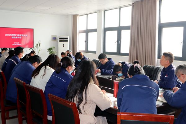 12月6午,公司召開2022年度部門及管理人員綜合考評會議,公司領導班子成員及全體管理人員參會,會議由黨支部副書記袁忠主持。