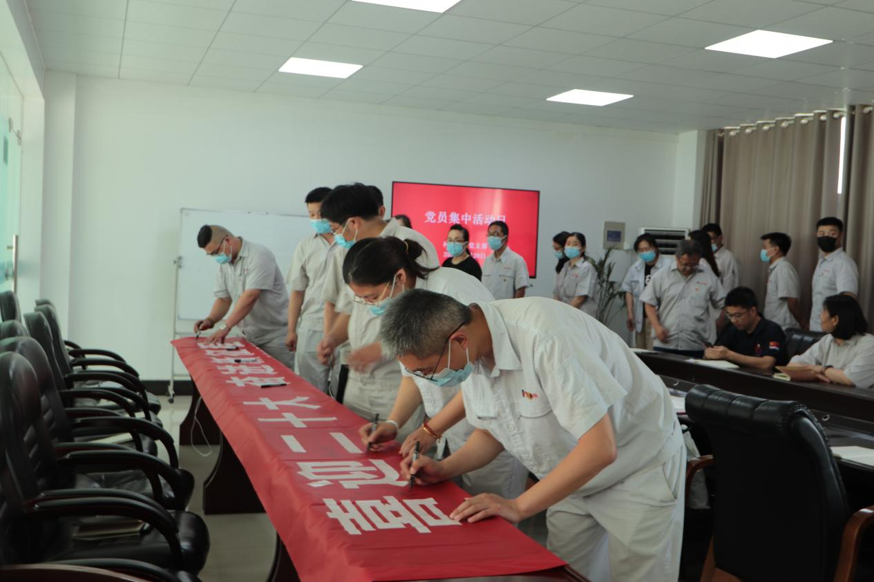 在七一即將來臨之際,公司組織全體黨員開展“喜迎二十大,奮進新征程”黨員集中活動日?;顒又?,與會黨員集體宣誓,重溫入黨誓詞,回憶入黨初心,并在條幅上簽名,作出鄭重承諾。公司黨支部表彰一批優秀共產黨員,激勵全體黨員守初心、勇擔使命、攻堅克難、建功立業。