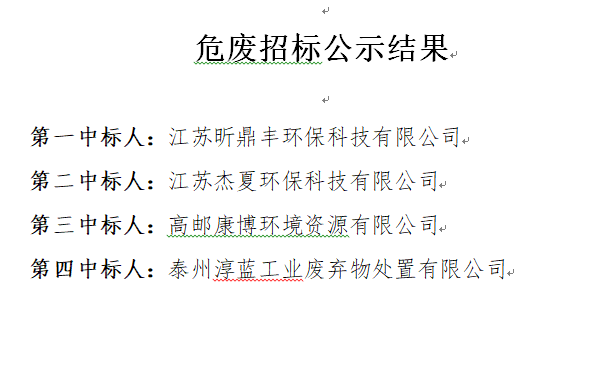 危廢招標公示結果