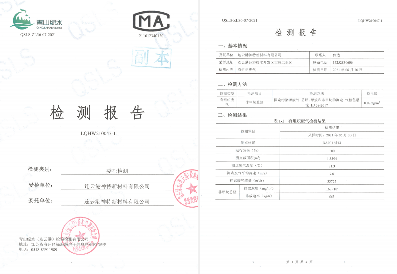 神特公司檢測報(bào)告公示